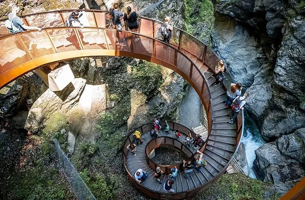 Liechtensklammi kuristik - kõige pikem sügavam ja muljetavaldam kuristik Alpides. Võimas loouslik vaatemäng. Sügavus kuni 300 m. Kuristiku lõpus on kosk. Laskume 30 m sügavusse spiraaltrepil. Kes seda ei soovi, saab meid oodata parkimisel. Kose juurde minek tasuline – lisandub reisihinnale (14 € - 2025.a. hind)