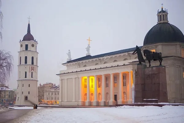 Pilgu tõmbab kohe enda poole Vilniuse katedraal oma klassitsistliku valge fassaadiga. See mõjub rahuliku ja väärikana, peaaegu antiiksena, ning loob väljakule ajatu rütmi. Katedraali kõrval seisab eraldiseisev kellatorn, mis annab paigale äratuntava silueti ja tuletab meelde, kui kihiline ja mitmekesine on linna ajalugu.